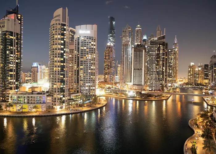 Marina View 2 Bedrooms Apartment-Gladiolus-By Grand Vista Dubái, una villa frente a la playa, está situada a 10 minutos a pie del Centro Comercial Dubai Marina Mall y cuenta con una piscina y un salón compartido para el disfrute de los huéspedes. La casa de vacaciones ofrece Wi-Fi y se encuentra a 2 km del Club de Golf Emirates.